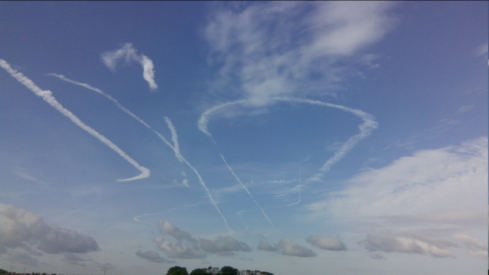 Vroeg in de ochtend zat de lucht alweer vol met dikke strepen. Er zal wel koelmiddel in zitten. Het is een stuk afgekoeld ten opzichte van de afgelopen dagen.