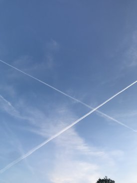 Ze hadden het gister al aangekondigd onder het mom van ‘sluierbewolking’ dus ik vanochtend kijken en de lucht weer vol met strepen. De vliegtuigen vliegen driftig heen en weer. Ach ja ze kunnen het maken want de insecten kijken toch niet omhoogNa 3 dagen prachtige echte wolken gezien te hebben. Zijn ze weer begonnen met die mooie vliegtuig strepenniks aan de hand hoor voor de rest.