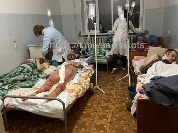 The wounded were awaited by five buses for 11 stretchers each, with a paramedic at the head, and an ambulance at the head of the column. A total of 55 wounded.