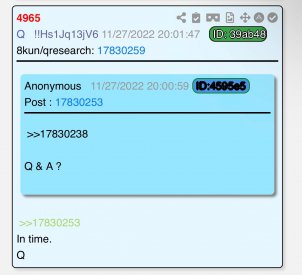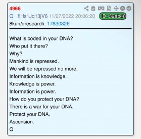 Maar goed, deze onzin wordt al geruime tijd gepropageerd en toen zei Q er niets van. Waarom nu wel? Omdat vanaf vandaag de Twitter-accounts van anons worden vrijgegeven en Elon Musk heeft aangegeven dat child trafficking voor hem priority #1 is om onder de aandacht te brengen. Het begon al met Balenciaga vorige week en er komt nog veel meer., dus maak je borst maar nat