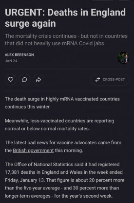 Look, here's the thing: none of the people responsible for pushing the mRNA jabs is ever going to say "yeah, shit. Look at the data. Damn. I killed people. This is my fault." That's just not how 99% of humanity works. Instead, they will hide from reality to assauge their consciences (for...