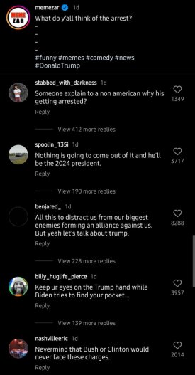 Here's an example from an Instagram meme page. 95% of the comments were based. Saying the Trump indictment is a distraction, or that Trump did nothing wrong, or talking about how some of the big Cabal players are corrupt.