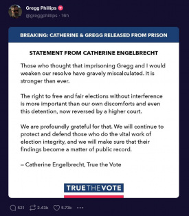 Nu gaande: True the Vote’s Catherine Engelbrecht en Gregg Phillips verlaten het federale gerechtsgebouw in Houston. Rechter Hoyt beëindigde de dag door te verklaren dat hij hen schuldig verklaart aan minachting van de rechtbank en de politie gereed heeft staan om hen maandag 31 oktober te arresteren, tenzij zij het ‘oplossen’.