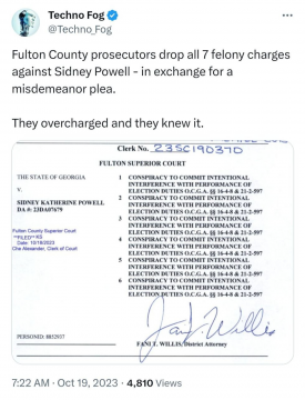 Once again, rushing to judgment over the lying MSM headlines about the Powell plea deal is creating needless heartburn. The media story is a guilty plea over nonsense. The real story is that the felony charges were dropped, meaning that the entire case is a giant fraud. “Hey, we got you dead...t.me