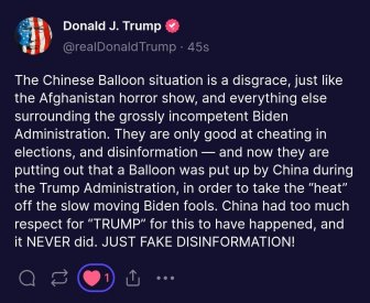 The whole china balloon thing is a farce and just Another fabricated bullshit story. As if they can't already see everything with the existing espionage practices! Remember we’re not in the 60’s so Theatre, theatre, theatre.